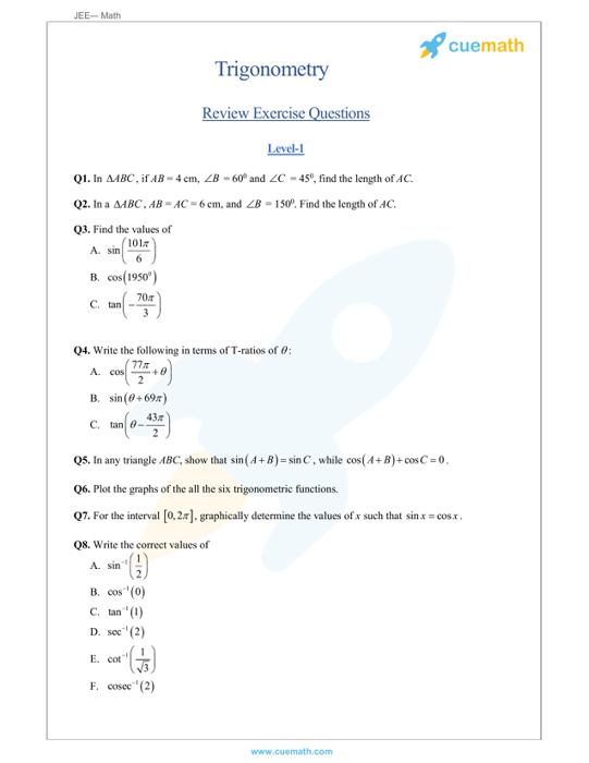Trigonometric Ratios Examples And Solutions